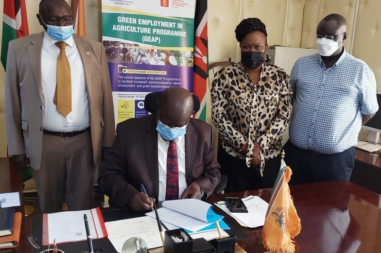 2nd December 2021 in Trans -Nzoia County, MESPT and the County Government have signed a memorandum of understanding on the modalities to implement the 5 years Green Employment in Agriculture Programme (GEAP), 2021- 2025 funded by DANIDA.